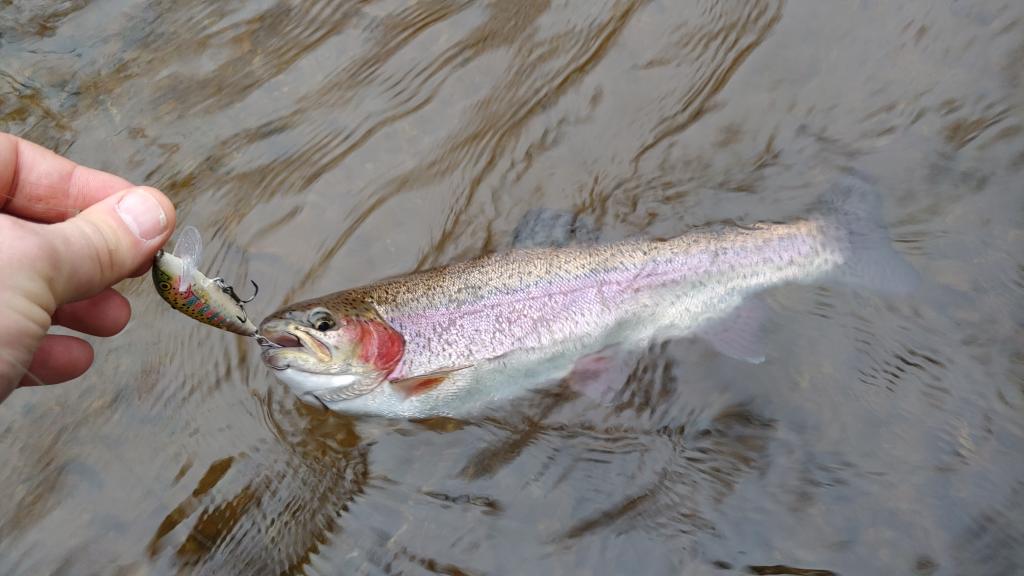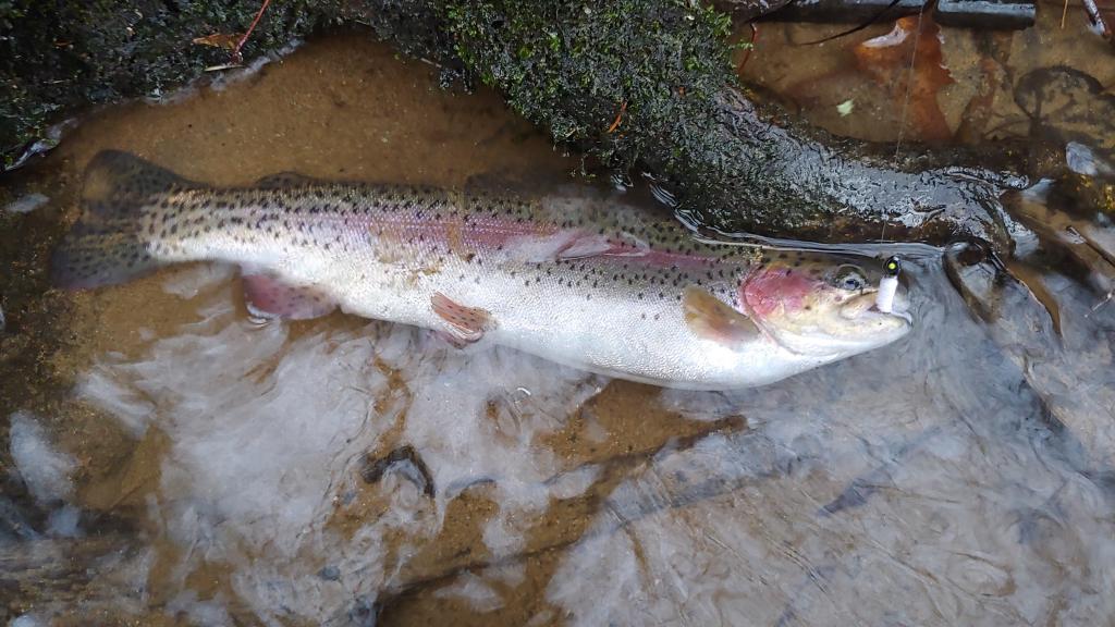 Water temperature: 48 degrees Skies: cloudy Water levels + flow: very good Water clarity: slightly discolored 12 trout in 5 hours in the upper half of the TCA, including a wild brown. Lures were a small Rapala plug and some grubs as shown in the photos. My only complaint concerns the size of the fish. I am surprised that I didn't hook into any bigger ones in a TCA, especially since it was stocked nine days ago by Shannon's. I saw six other fishermen throughout the day, which is a lot for winter troutin' in January. |