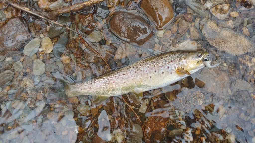 That is a nice looking stretch those trout did not look to bad, i am sure that the bigger trout are there the water level looked a bit low. When did they stock the fish might have spread around to other holes or undercuts. cool photos as well