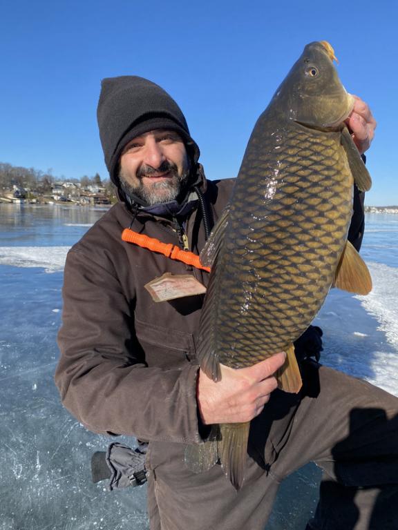 That's one heck of a fish and one hell of a story. Who would think you would catch a carp in the winter? That's the beauty of fishing. You never know what you might catch!