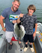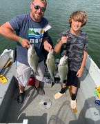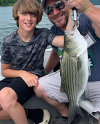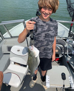 Headed back to the hybrid grounds again. Hit a bunch of spots and marked them good just about every spot but they wouldn’t chew. Picked a few whites in the mix then last drop I put the boards out and 4 on! Didn’t mark them or anything just outta nowhere all hell broke loose. I love it!!!! Got three of the four in the hoop. Stayed on them for a bit then had to bail. Great couple hrs of fishing and congrats to Daniel on his first couple of hybrids!