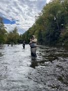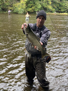 Myself Eddie Scotty and James made the day trip run up north Saturday. With the river cranking all last week and then water dropping Friday we knew it would be on! Fished a old spot on the lower end of the river and had fish all day non stop. Small flys and light 8lb leader worked well for us. I managed a small brown and well over 50 salmon not one landed! All the anglers on the run and high water made it quiet challenging to get them in the hoop. Was nice to get back up there and do our thing and get in on what I’m gonna call the best run in 10 + years. Be back next week with crew for our big yearly trip looking forward to it.