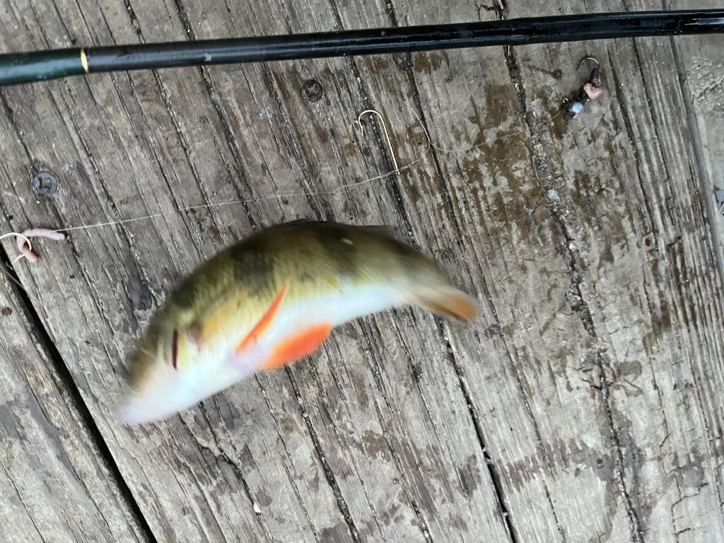 Went ultralight jigging in a 42 degree muddy, flooded Central Jersey lake this afternoon on a cold, cloudy day with a strong northwest wind. There was current in the lake from the release of flood waters. Saw 11 other fishermen catch crappies and perch. I caught and released 20 white perch, 2 yellow perch and my first white catfish for this year with Walmart red worm halves on two gold hooks and a 1/32 oz unpainted leadhead jig on 4 lb test line. Landed 537 fish in 16 fishing trips this year from the same spot.