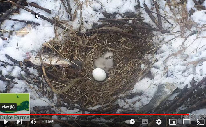 There was a second rainbow in the nest today. The eagles had a few lean days for food, but they always had something to eat. One of the first fish dinners was a crappie. The suckers filled the void along with a rabbit or two until the state stocked trout. Now, it's game on. The eagle chicks are eating on their own little by little and the fish seem more plentiful. The best video was when it snowed and one of the parents stayed on the nest coving the chicks while she/he was covered with snow.