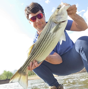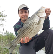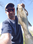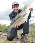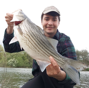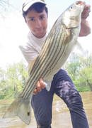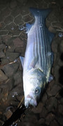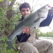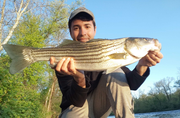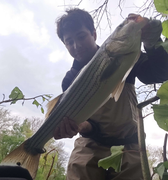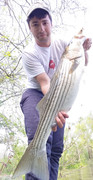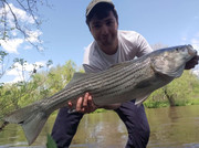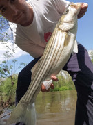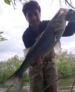 Landed probably 7 that day, great time in the rain with eddie and friends : ) Through April, river striper fishing was good. I was a bit lower down river than usual, and I wasnt having luck upstream as much. Until one day the flatheads were just CHEWING on jigs?? between three anglers, 9 flatheads were landed all on jigs. this PB 33 incher on a 6 inch swimbait. Gigantic powerful headshakes! Also a bonus Largemouth, still havent found a NJ smb this year oddly.. no complaints to get more stripers. Some days when the water is low and calm I will get them on topwater magnum zoom flukes. Gotta sorta reel it in steady and give it flicks, and when there's a wake behind it and no commitment, can let it drop and slow sink with a few twitches. Awesome This also worked on the hybrids. Great fun, they were up shallow and accessible from shore. ![]() |