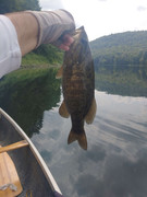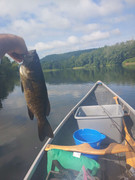 I ended up focusing more on the slower water and hit the edges where the shore was, pretty much just outside the grass. I got most of my nicer ones there, spotted bigger ones as I floated over them. One of the better ones i lost at the side of the canoe was out of one of the creek confluences, smallmouth was sitting in like 5 inches of water and it waked and slammed my lure as I swam it back.