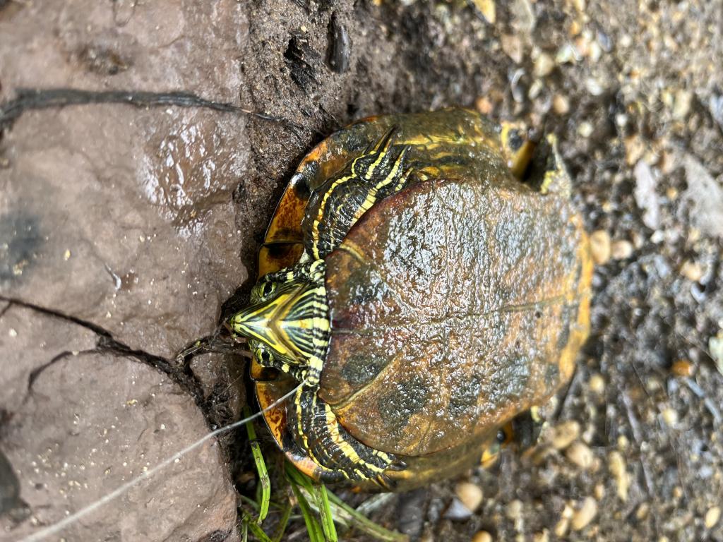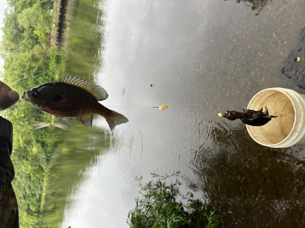 Went carping in 80 degree Carnegie Lake this evening during a thunderstorm. Only one car was in the parking lot when I arrived. Put on my Grundens bibs, Columbia rain jacket and LaCrosse knee boots, then didn’t take them off until I returned to my car to go home 🏡 because the mosquitoes 🦟 were all over me the whole time that I was at the lake even in the rain. The sun came out late in the day when 9 subsistence fishermen arrived and killed everything in the lake. I threw out a can of corn 🌽 for chum, then did some ultralight jigging. Caught and released a white perch with a chartreuse Big Eye 1/32 oz twister tail jig on 2 lb test line. Lost 2 largemouth bass and a few other fish 🐟. Then I started using Bowl and Basket whole kernel corn 🌽 on 3 hooks with 12 lb test line on my French Mitchell #300. After I bent a hook while removing it from a turtle 🐢, I used my brother John’s Shakespeare Alpha 50 spinning outfit. Caught and released 6 bluegills, 2 musk turtles, and a redeared slider with corn bait.