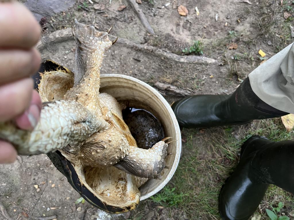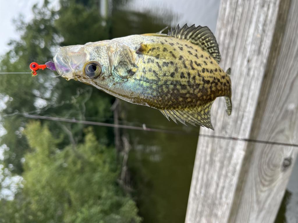 Went carping in 79 degree Carnegie Lake this evening on a hot, humid, cloudy day with a moderate east wind. 4 intruders were in my spot so I fished on the Aqueduct until one of them fell into the lake. Karma is real. After they started fishing 🎣 to my right, I moved to my spot. Saw a fisherman catch and release a 3 lb bass. I caught and released 3 black crappies and a white perch with an orange 1/32 oz Big Eye jig and 1” purple twister tail on 2 lb test line. Found half a can of DelMonte whole kernel corn 🌽, then threw it into the lake. Caught and released 6 bluegills and a 22 lb snapping turtle 🐢. Landed 104 turtles this year. Only killed one mosquito 🦟. Got bit. Saw a great blue heron catch and swallow bluegills in my spot. Osprey were fishing nearby. Caught more than 2,500 fish 🐠 in NJ this year.