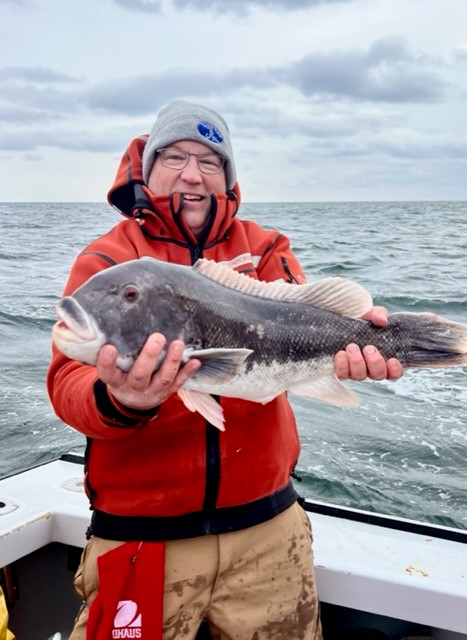 I had a very good day yesterday -- limit catch and I released this nice male DD tog using my nephew's jigs.