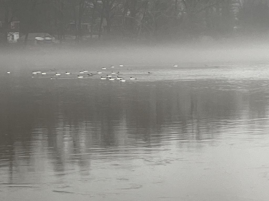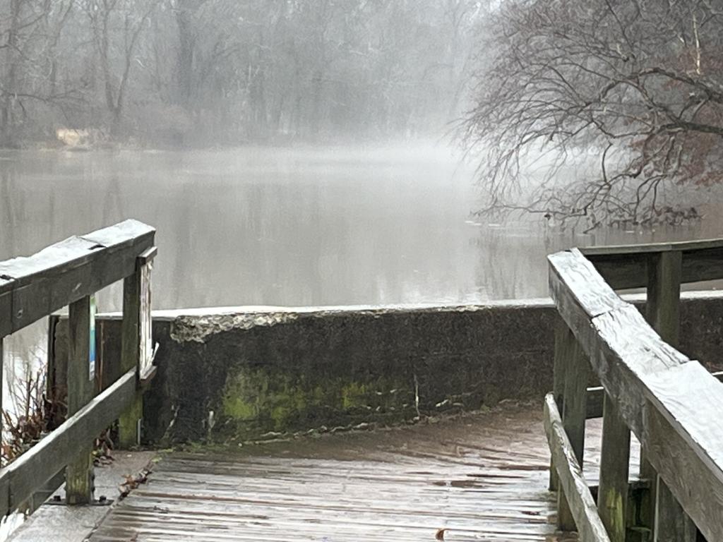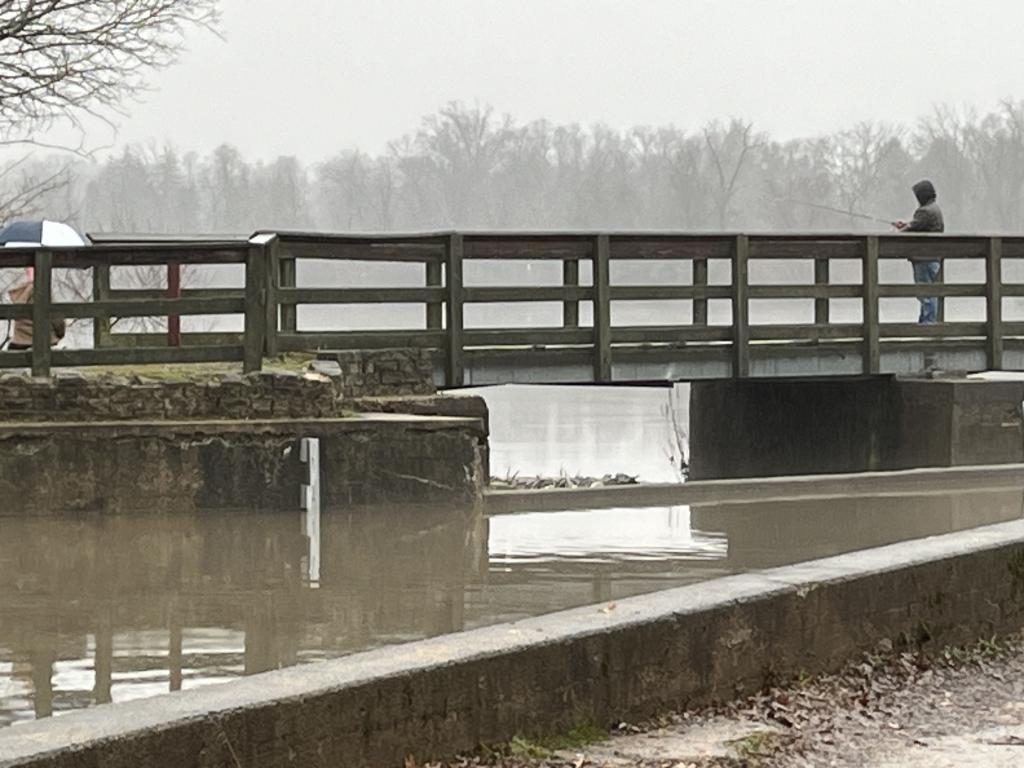 Went ultralight fishing 🎣 in muddy, flooded 50 degrees Carnegie Lake this afternoon in the rain and fog during a nor’easter, small craft advisory and flood warning. There was a swift current in the lake from flood water release. The Delaware River flow at Trenton, NJ, was a new record for the date. Met two guys in the parking lot who enjoyed reading my posts on the Internet. Three people were fishing 🎣 in the river with an umbrella ☔️. They caught a catfish. I caught and released a gizzard shad with Walmart red worm 🪱 halves on 4 lb test line. Took pictures. Winter flood fishing 🎣 in Central Jersey really sucks. I may try waterfowling instead.