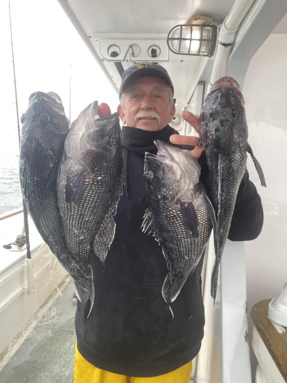 See you Friday. We had a respectable catch on today's Offshore Giant Sea Bass Trip with some nice 6 to 7lb. SEA BASS along with PORGIES and several WEAKFISH! The GOLDEN EAGLE sails every day for STRIPERS & BLUES at 7:30 am from Belmar Marina in Belmar, NJ. For more information visit us at www.goldeneaglefishing.com or call 732-681-6144. See you onboard. |