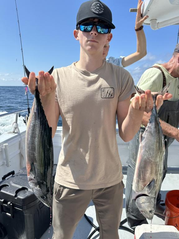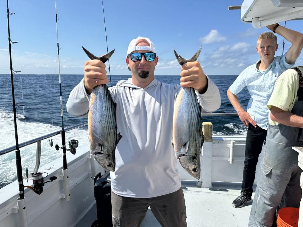 It was a GOOD day out on the hills and lumps today. We had mostly BONITO. There were nice long drifts where we picked with shots on the BONITO with BLUES in the mix. You had to work at it but the anglers who stayed at the rail and worked their lines did well.