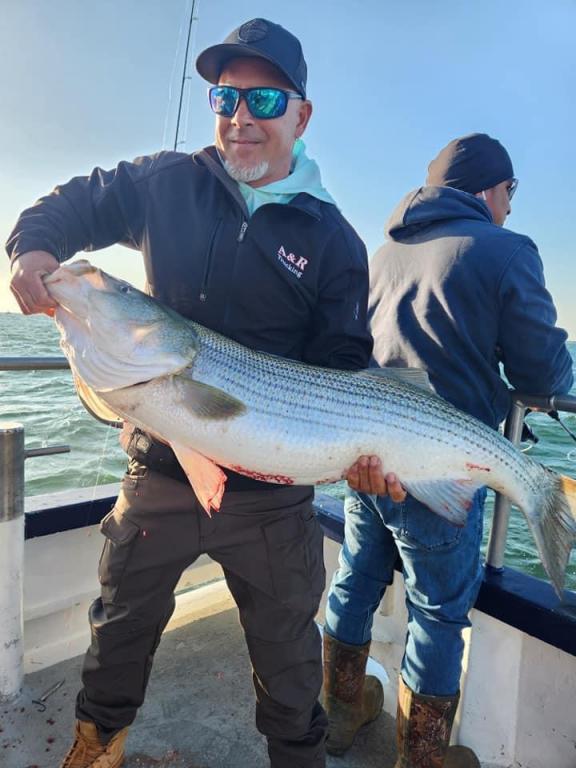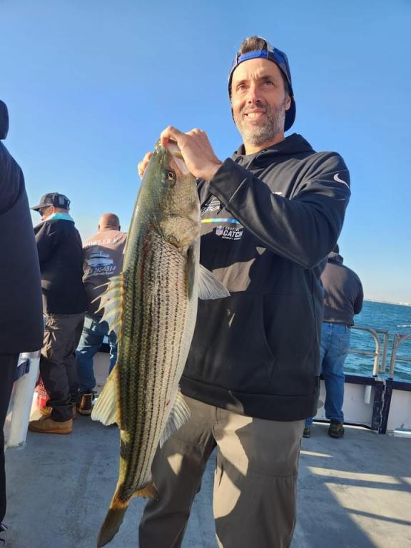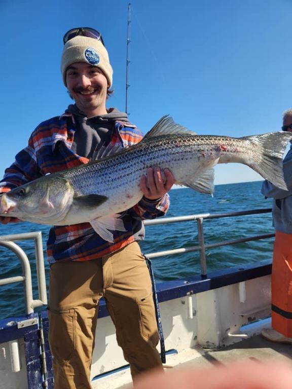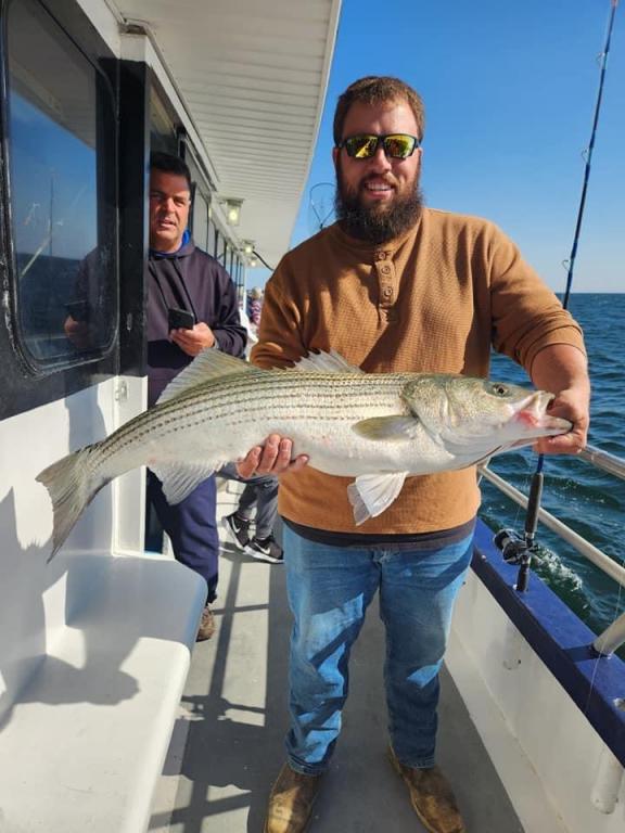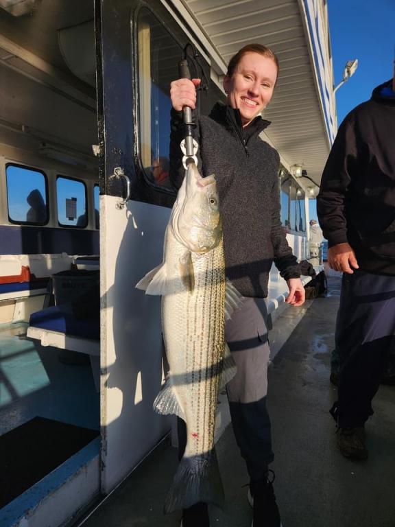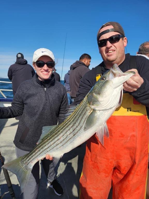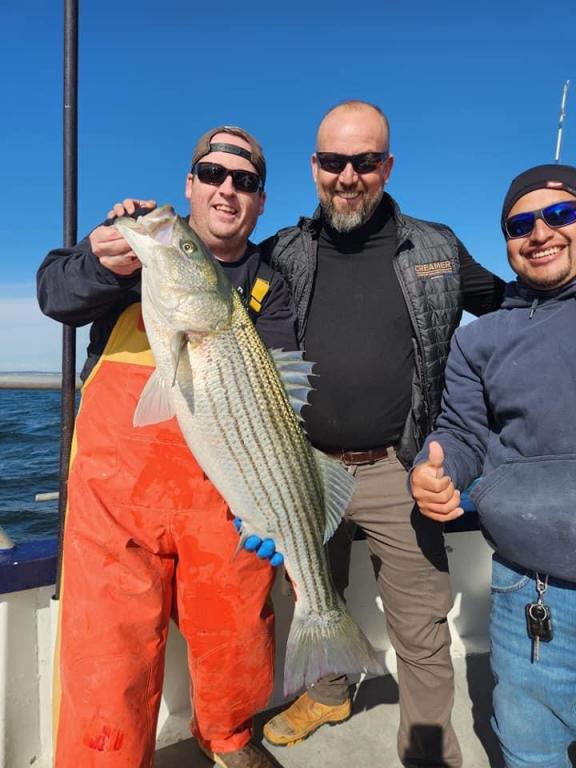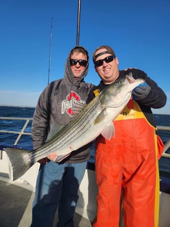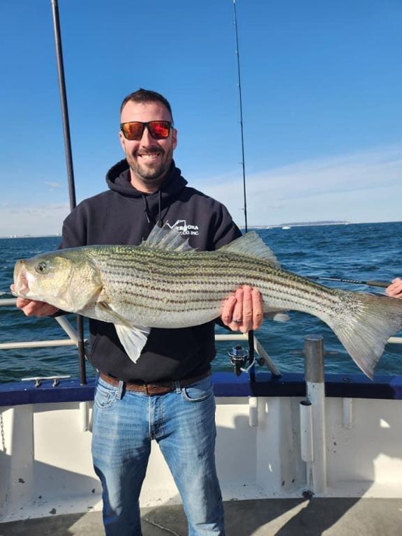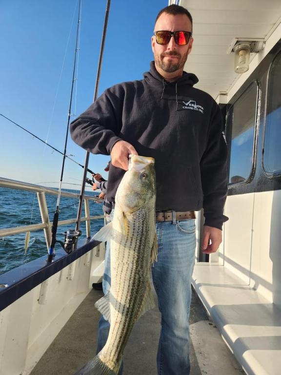 Hey gang, it has been fun to come out on the ocean last few days. We got into those big beautiful bass again today. They were biting all day. We have the other half of the Fletcher Creamer Charter onboard, and they did a fantastic job of catching large striped bass. Bridget landed a couple beauties, Raul had in the double digits, and Greg took the pool with a beautiful 46inch fish. On behalf of the crew and myself, it was a pleasure to fish with this group today. Don't miss out on this fantastic bite! Capt Jack will be at the helm tomorrow, Sunday the 27th. He is definitely going to put you on the meat, so do not miss out! I will be back at the helm Monday. Fare $90, spinning rod rental $10. Bring your diamond jigs!
