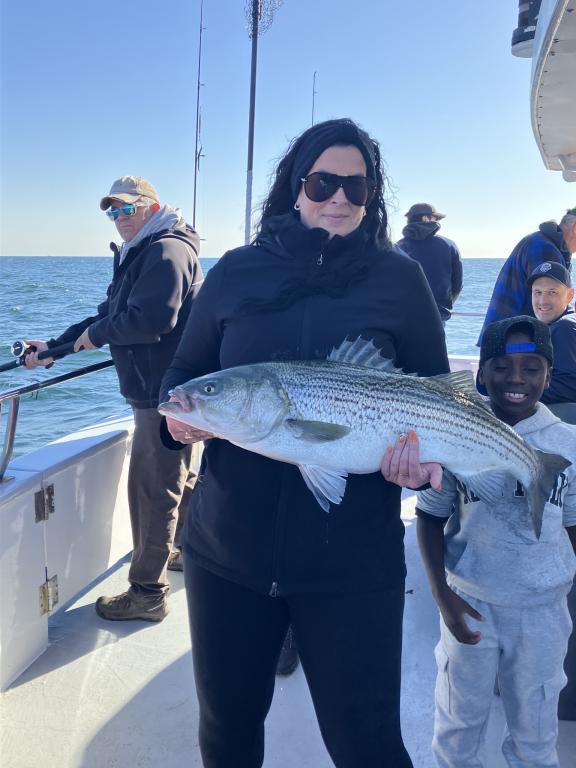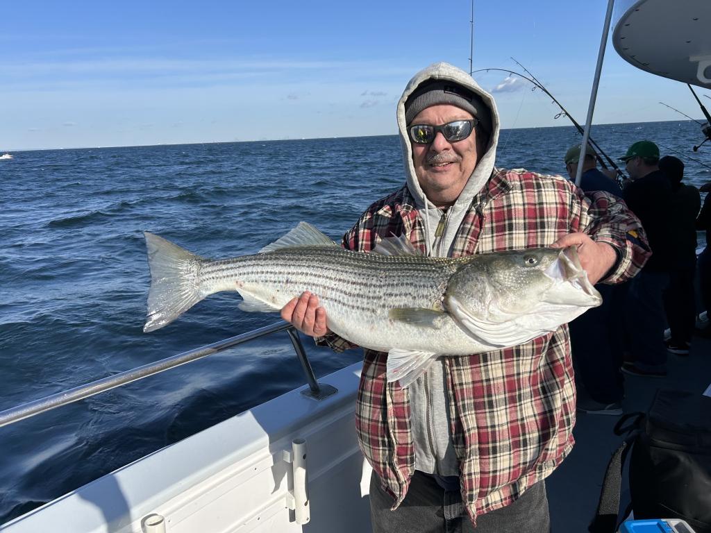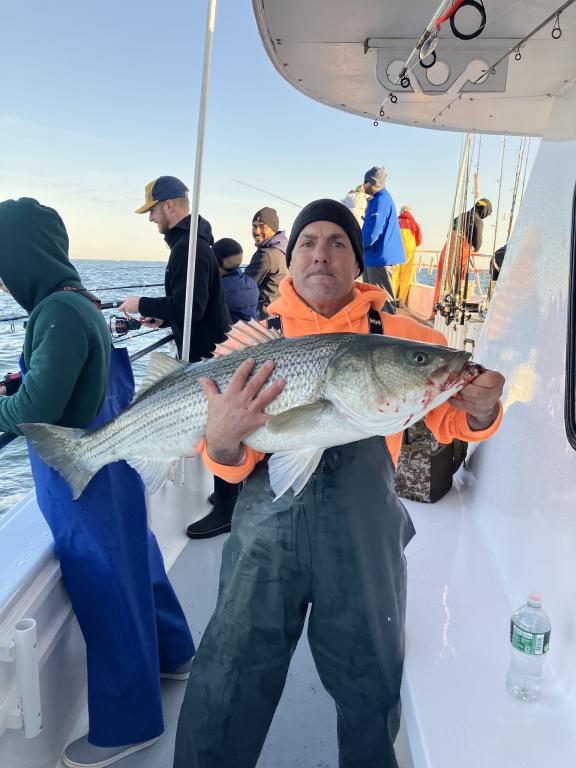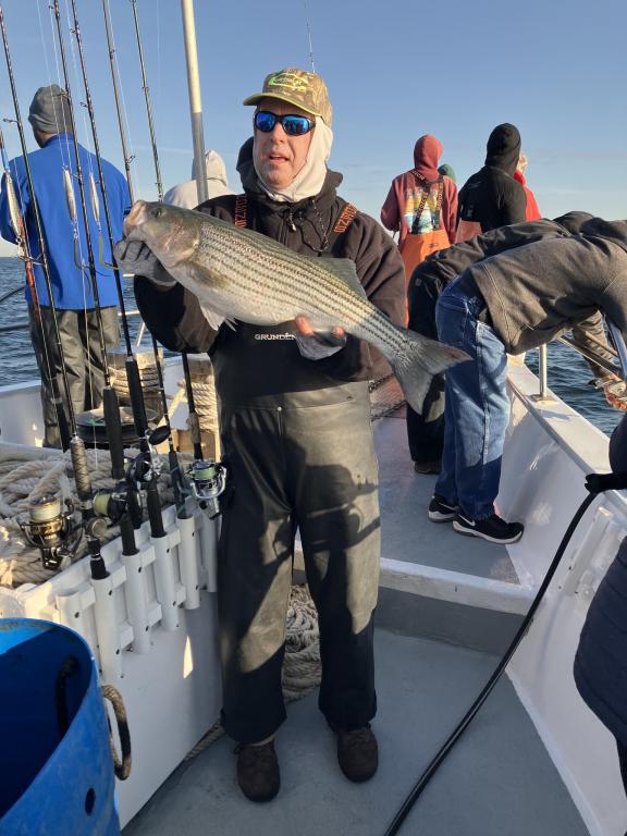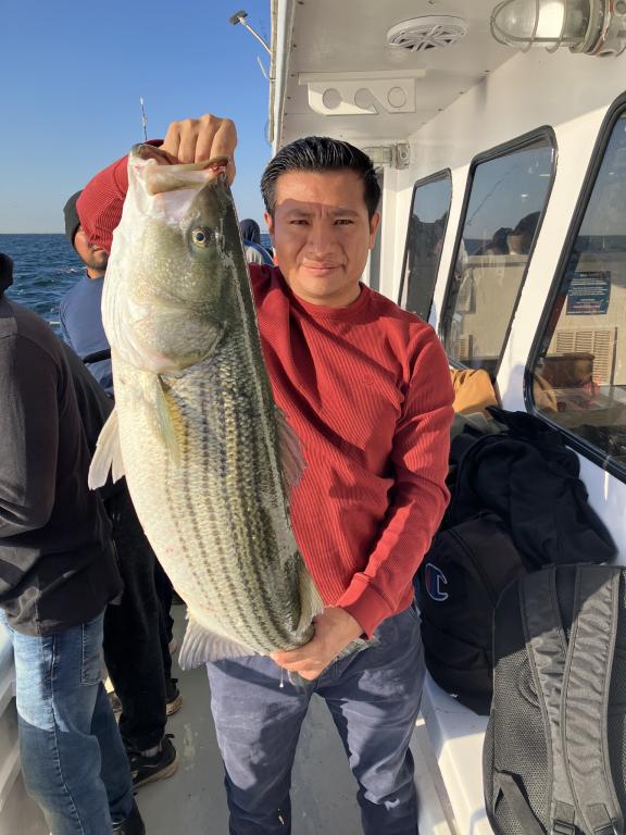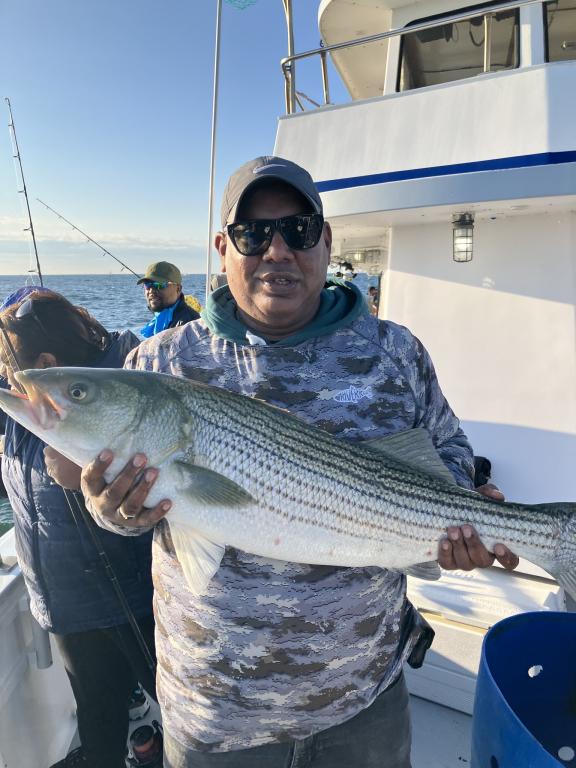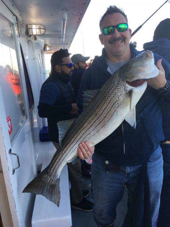 The majority of STRIPERS were OVERS that were safely returned. We also had a handful of KEEPERS. Check out the pictures from today's trip and make your reservations to get in on the action. We have space available on our Morning Trips so come on down and enjoy a fun day of bringing these fish over the rail. The GOLDEN EAGLE sails every day for STRIPERS & BLUES at 7:30 am from Belmar Marina in Belmar, NJ. For more information visit us at www.goldeneaglefishing.com or call 732-681-6144. See you onboard. |