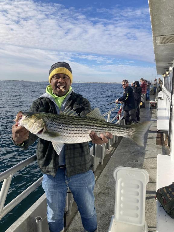 Striped Bass fishing has been excellent. We’re sailing at 6:30 AM on Saturday this week, Tuesday, 6 AM Thanksgiving day, and 6:30 AM on Black Friday.