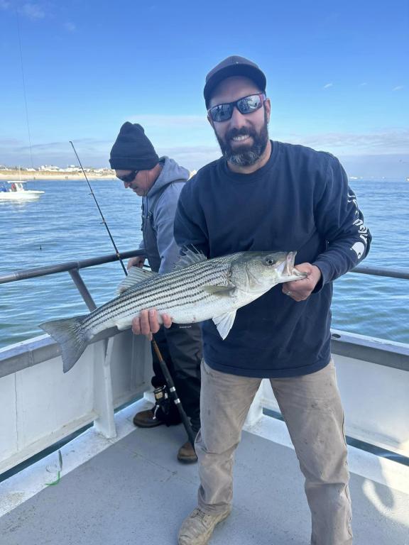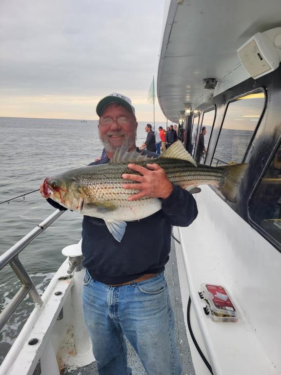 🎣HOT STRIPER fishing continues on both boats today! KEEPER size fish caught today with very few throwbacks! Everyone went home with dinner so now is the time to get in on all the action!! We will not be sailing tomorrow due to the weather but will be back at it on Friday 👍