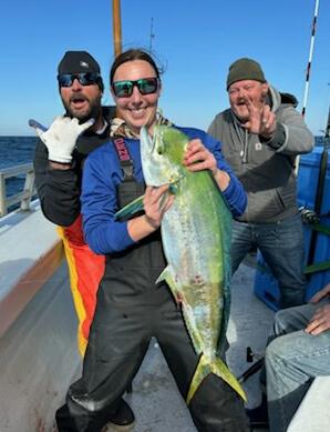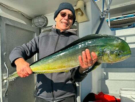 Totals: 12 Goldens-all big 25-58 lbs. 12 yft all around 50-55 lbs. 3 mahi. 2 skippies.