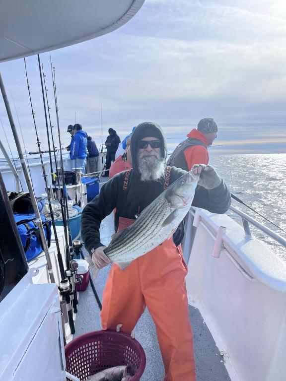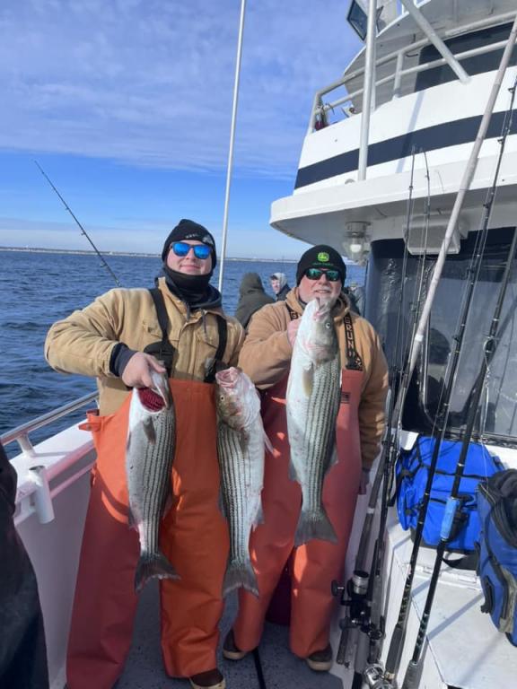 🎣HOT STRIPER fishing continues on both boats today! KEEPER size fish caught today with very few throwbacks! Everyone went home with dinner so now is the time to get in on all the action!! We will not be sailing tomorrow due to the weather but will be back at it on Friday 👍