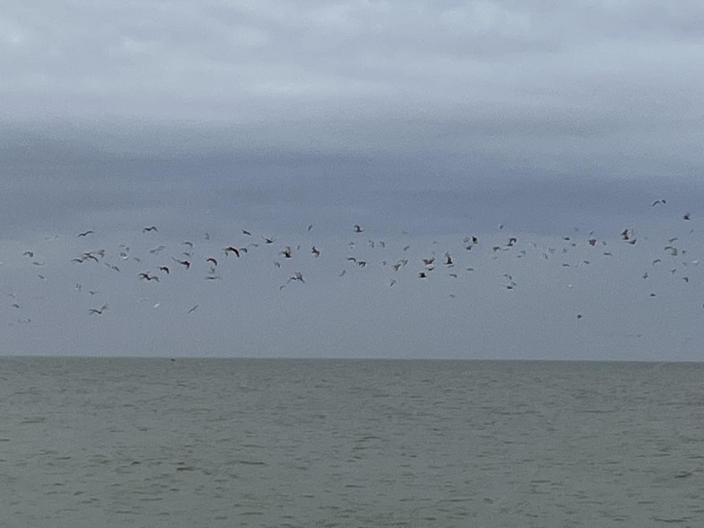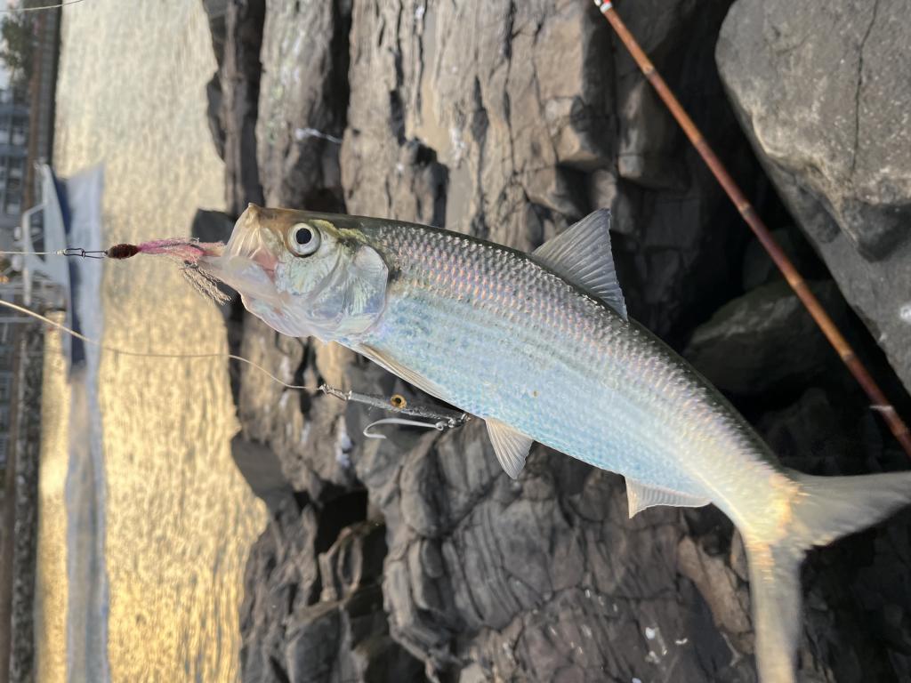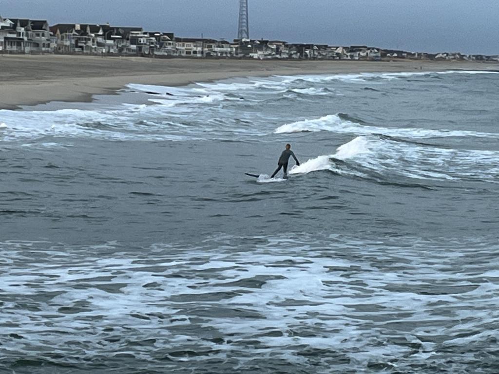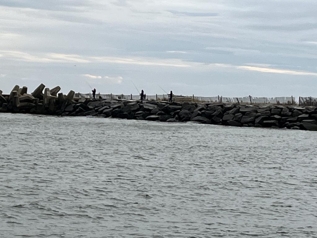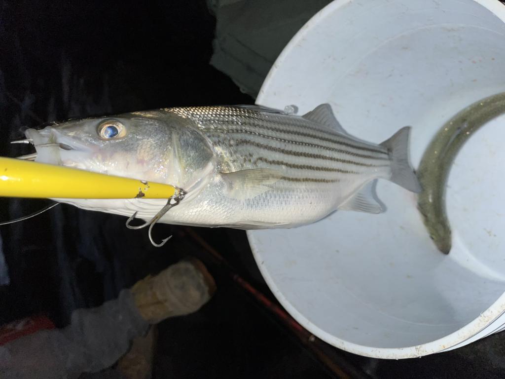 Went fishing 🎣 at Manasquan Inlet this warm evening in the rain with a sou’easter small craft advisory and outgoing tide. Saw a fisherman on the south inlet jetty catch a fish 🎣. Lost a fish 🐟 in the inlet, missed a hit, then caught an 18” 1 lb 6 oz hickory shad with my brother John’s homemade synthetic pink and white bucktail teaser. Saw a full rainbow 🌈 over the ocean, then took photos. Panorama never worked for me on my IPhone 13. The young, blonde surfer 🏄 girl arrived with her friend late in the day and rode a few waves. I took pictures. 5:30 at night, I caught, tagged and released a 17” 1 lb 10 oz striped bass from the ocean with a yellow ASalt Bomber. The 17” striped bass that I caught, tagged and released on December 9, 2019 was recaptured in Raritan Bay on May 9, 2024. It would be amazing if today’s striper was recaptured. I caught 59 fish 🐠 in 51 trips to Manasquan this year and got 5 fish 🐟 tag returns.
