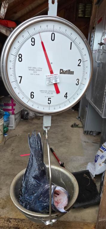Looks like its actually nine pounds six ounces...only fifteen ounces shy of being a world record fish,which was also caught off of Virginia...in any case,thats the catch of a lifetime for anyone that likes sea bass fishing..