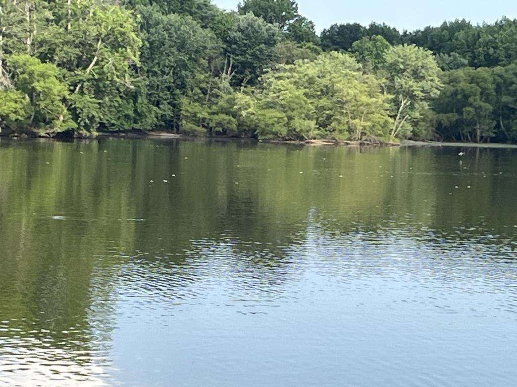 Went fishing 🎣 in 97.8 degrees Robert G Martin Lake this evening on a hot 🥵, humid, sunny day with a light west wind before a thunderstorm and cold front. Found a dead 18” largemouth bass and more than 50 dead bluegills on the shore from an illegal cast netter. Saw more than a hundred dead and dying 14” gizzard shad in the lake. Reported the fish 🐠 kills to NJDEP and Hamstat. Threw out canned, whole kernel corn 🌽 for chum, then caught three bluegills including a double and a common carp with corn bait. Landed 42 carp this year. Took pics.