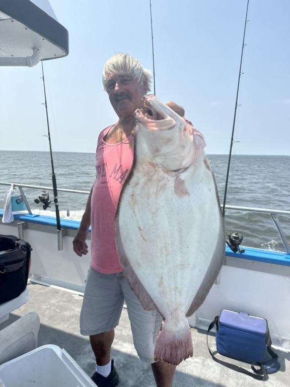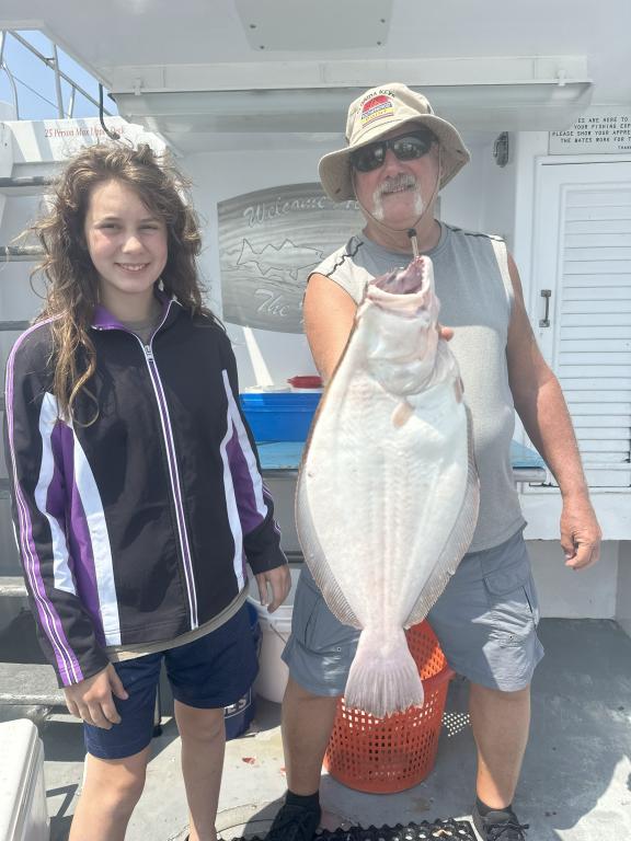 Headed out with a nice crew today, had a short window of opportunity with the change of tide & East wind coming on. Got on the first drift and had good action right away. Big John & Super Dave had their three right off the bat. Dave landed a beauty at 5 pounds 8 ounces to take the daily pool. Bill V. had his granddaughter out for her first trip, she hung in there all day and landed a very nice Fluke!!