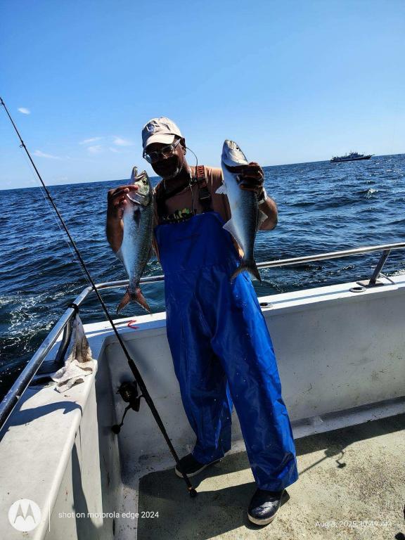 🎣 The bluefish bite is on fire, all the blues you can reel in, non-stop action from start to finish. We also had some nice sea bass mixed in. The ocean is calm, the weather’s perfect, and the crew is ready to get you on the fish. ✅ We also have whale watching 7 days a week – book your trip now! 📞 Call (732) 681-6866 or visit missbelmar.com to reserve your spot. #MissBelmar #BluefishBite #FishingNJ #SeaBassFishing #JerseyShoreFishing #BelmarFishing #FishingCharter #NJBluefish #WhaleWatchingNJ #JerseyShoreWhaleWatchingTour #FamilyFishing #BestFishingNJ