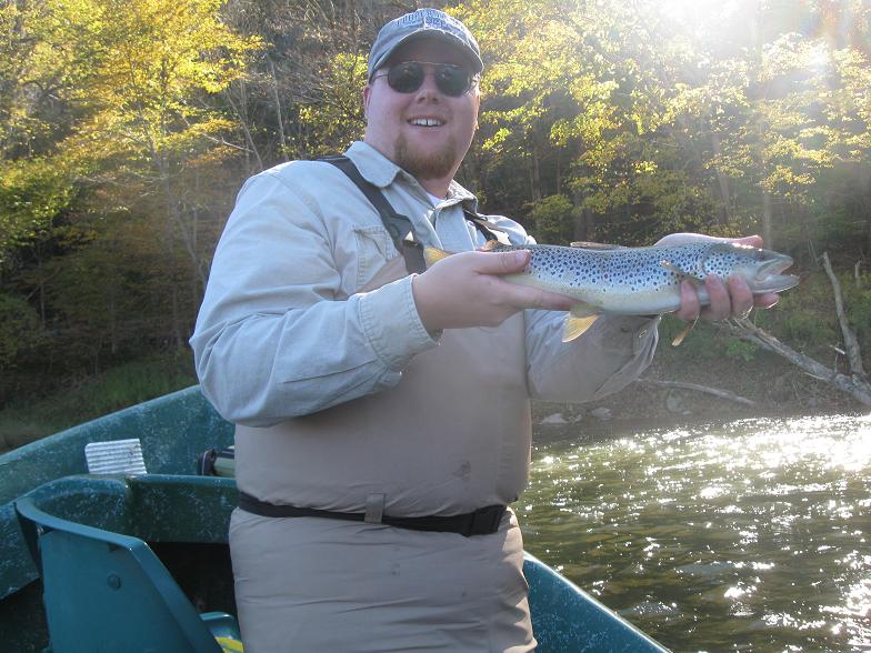 Andy thanks for the invite 1st. It was good to meet you, Lard and Wilson. For me it was a new environment never wading in "big water" like that before. The views there as well as the quantity of non stocked trout was pretty amazing. . I was partnered with Andy on our 2 day T2P adventure and we started on the West Branch which amazingly did not look like good trout water but they were there, I caught 8 Browns till we moved to the East branch were I got 1 and lost an nice Bow that broke off on the initial run. On day 2 it was our turn on the drift boat where after getting 2 in the pre lunch 1/2 I picked it up in the 2nd half with 1 brown, 5 bows and a chub? I lost at least 3 quality bows that I just didn't hook up on right. They may have swiped at the lure but I think it was more operator error and not getting a good hook set. I will post some pics after I get my laptop back from the geeksquad. I should have taken more advantage of fishing with Andy and picked his brains. I am definately going to fish that area agian. I give myself a solid grade of C, passing but need of improvement particularly in hook setting.