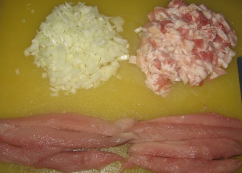 Mix onions, bacon, and tomatoes with Saffron rice. Set aside.