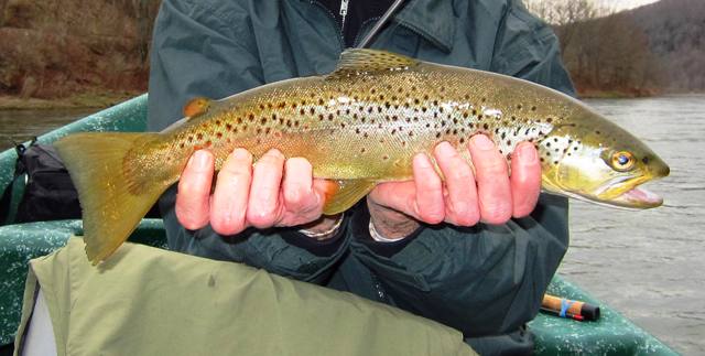 I drove up Thursday morning after a doctors appointment and got on the Beaverkill down stream of Roscoe around noon. Fighting 40 mph winds and snow flurries I managed 2 16" brown trout from Carins pool. Fished down stream and hit various pools including cemetary pool, no other fish caught.