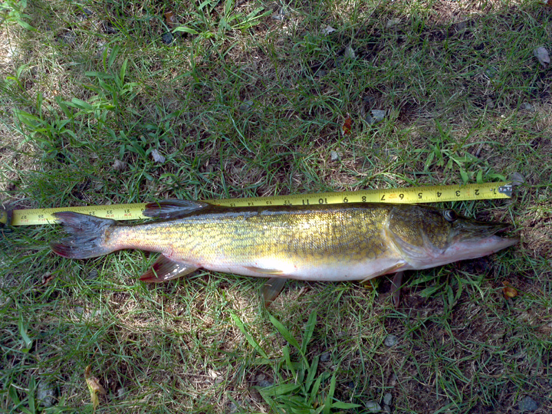 I caught this at one of the town park ponds here in Denville the other day. Lure was a #4 Panther Martin gold spinner dressed with red/orange hair. 10# stealth braid line with 6# fluorocarbon leader... no idea how he didn't slice it off. 25.5" with an 11" girth, beats my old personal best chain by 3.5" of length. Caught, released. Qualification for chains for C&R angler awards is 24" so I sent it in... how much bigger have people caught them around here?