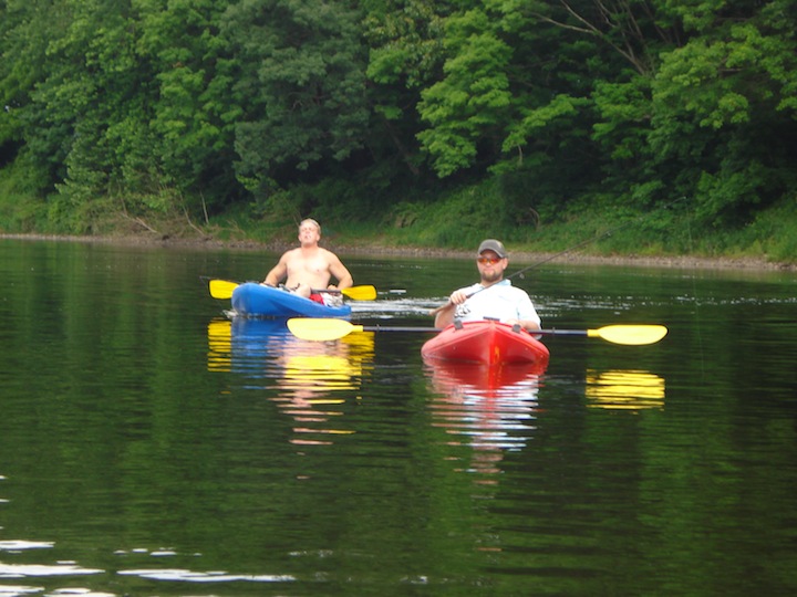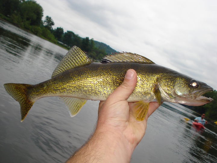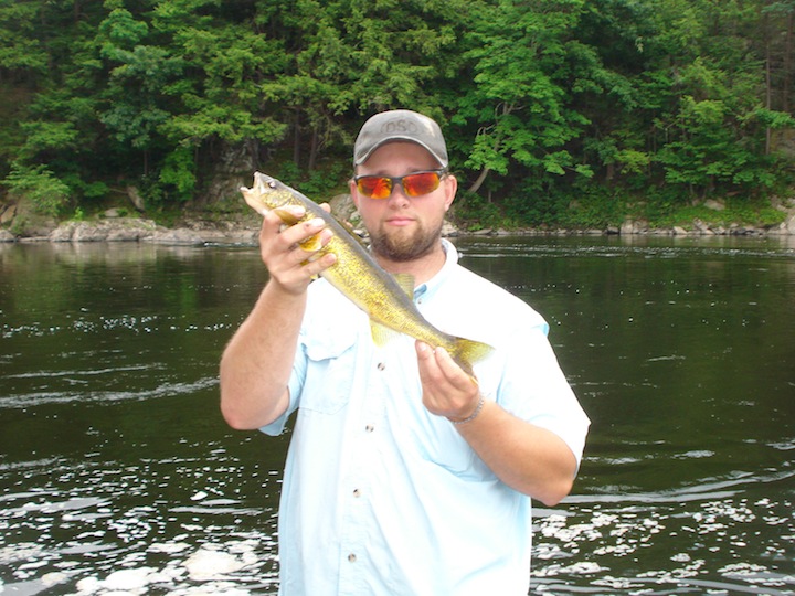 Took a short 7 mile float yesterday from POXONO ISLAND down to the WATER GAP with Bob and Mike. We kinda rushed through it because I had a BBQ to get to. Started at 7 am sharp. Lots of Shad still in the river, I mean theres thousands but there swimming around half dead. Target species Walleye, I caught 4 for the day while floating. Mike had 2 on the day with a bonus 1 lb Bluegill to add to his trophy wall. Couple of Smallies and Fallfish were caught as well. All Eyes were short between 15 and 17 7/8 inches which would be a nice limit in Canada. Bob caught 2 chubbs on a spinner, he had a bad day because he brought a kiddie paddle for his Kayak that was 3 feet long. Only spot we stopped at to fish was the Aquarium pool, boys if you never fished this hole you have no clue what your missing. 3 eyes and the monster gill came out of this hole at 1 in the afternoon. This stretch of river has flattened out alot over the past couple years but theres still fish to catch. We got off the water at 230pm. Floating,