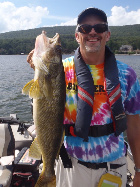 Out with my friend Russ Bassler today....very slow...and then the weather changed...ended up with a largemouth, 4-5 jumbo perch, a 6 lb. walleye and a 45 inch 25 lb. class musky.....enjoy....Capt. Dave