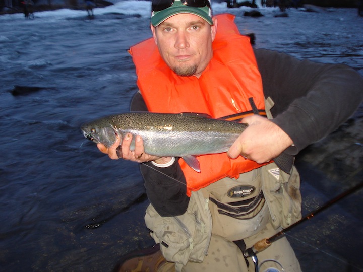 Hit the big river friday with Matt, Mike and Yuri. weather was warm and a sunny 80 degrees. Lots of Salmon in the river, 75% of them are just about dead. Fished all day with my man Matt hooking into his first ever King Salmon. I was happy to see him land his first SALMONOID. Yuri and mike fished for Steelies and Browns the entire trip. Yuri got a beautiful 8.5 lb Brown on a natural egg. Mike did not do well on this trip, I dont think he landed anything. BUMMER! He hooked alot of CHROME but never got them to the net. Day 2, Saturday, cloudy overcast around 55 degrees. We got down to the river bright and early. Mike again hooks alot of fish but just cant get em in with the 4lb leader. Yuri got the SKUNK. Matt hooked a good amount of Kings and a 15 lb Steelie that made a run that was impossible to turn. 50-60 yards of line gone in about 2 seconds, fish hit some current and came unglued. We fished oz for the entire trip because of a lack of water in the tribs. I really wanted to hit these under fished tribs but the timing and water levels just were'nt right. Sunday we didn't fish, woke up late do to the fact that we were partying til 4 am. LOL, we didn't crawl out of bed until 10, LOL!!! All in all a fair trip with fished hooked and lost. Some did well, others did not. Im amped that Matt got a King and got a taste of the madness. Heres a few pics. TIGHT LINES GOOD TIMES!!!