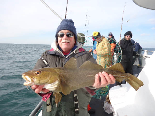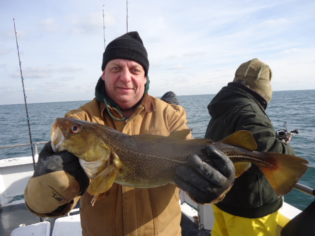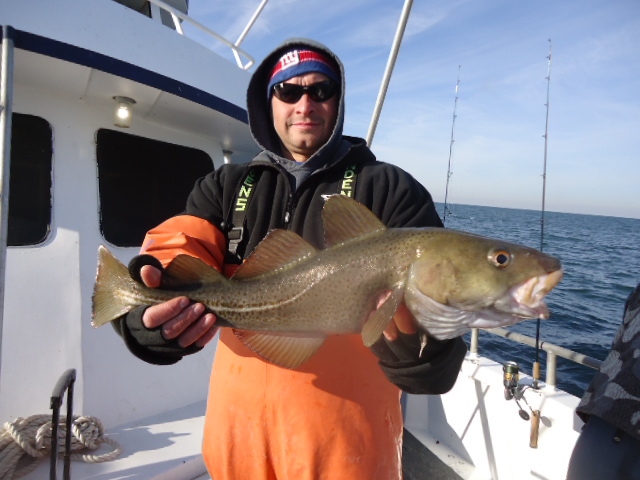 Unless its blowing over 30kts..we will be fishing 10-20 mile wrecks and rocks everyday the rest of the winter for the Togs,Cods,Lings,Sea Bass,Pollocks,,,etc....If it is to nasty we can fish closer to the beach as long as the water does not get to cold....Best depth we have found this week has been in the 90-130ft.range...That might change if the water keeps getting colder and colder....Crazy year so far so anyones guess what we shall see this winter..So far I am happy with the life,,we shall see....