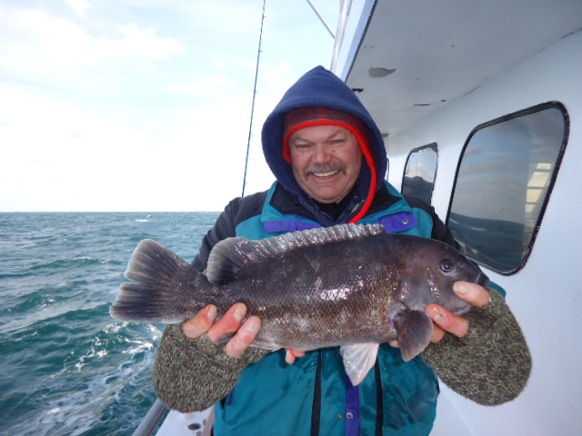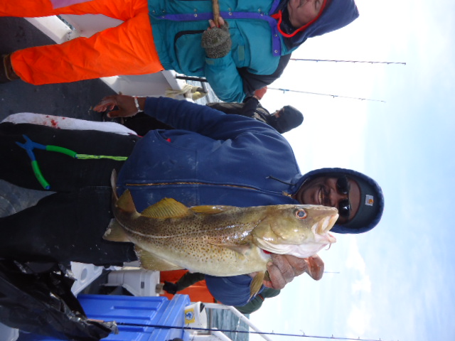 1-2-13 Only had a small crowd show up today,,can not understand why,,it was a balmy 25 degrees out this morning!!!Fishing today was picky,,,,loads of life on the bottom,,,the gizzies were chewing your bait as soon as you hit bottom.....Weeded through em and each drop we had some sea bass,both keepers and shorts,,,handful of Keeper Codfsih,,,,few keeeper blackfish,,some blues,,,,few ling here and there as well..Not bad fishing,,just not real good...High hook had three sea bass,,three ling and a nice Codfish to go home with,,,,not a bad meal!!!Olu had two keeper Codfish,,and some other dwellers of the deep..Others had different results but overall not a bad day out,,check out some pics..See ya tomorrow..