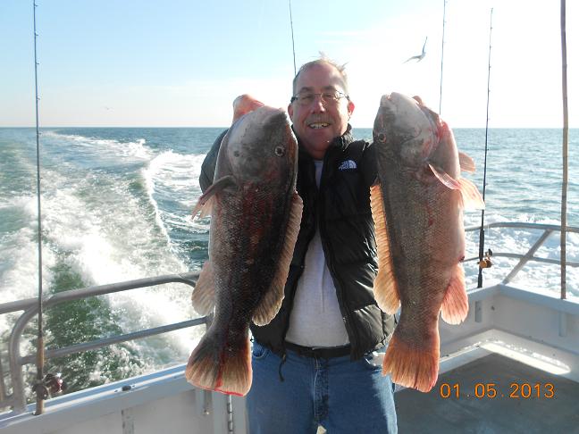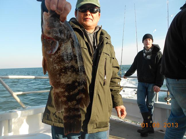 Hey gang, Capt. Scott here. I have the boat out today and we have some nice tog on the boat with limits. Catching them on green crabs and white leggers. Will post pictures when I get home this afternoon. Capt. Glenn had a good trips on Sat. and Sun. too. Looking forward to getting back out here. We have regulars coming down. Capt. Glenn will be at the boat in the A.M. I'll see you on Thurs. Heated handrails, green crabs supplied, white leggers available for a fee. Thanks, Capt. Scott
