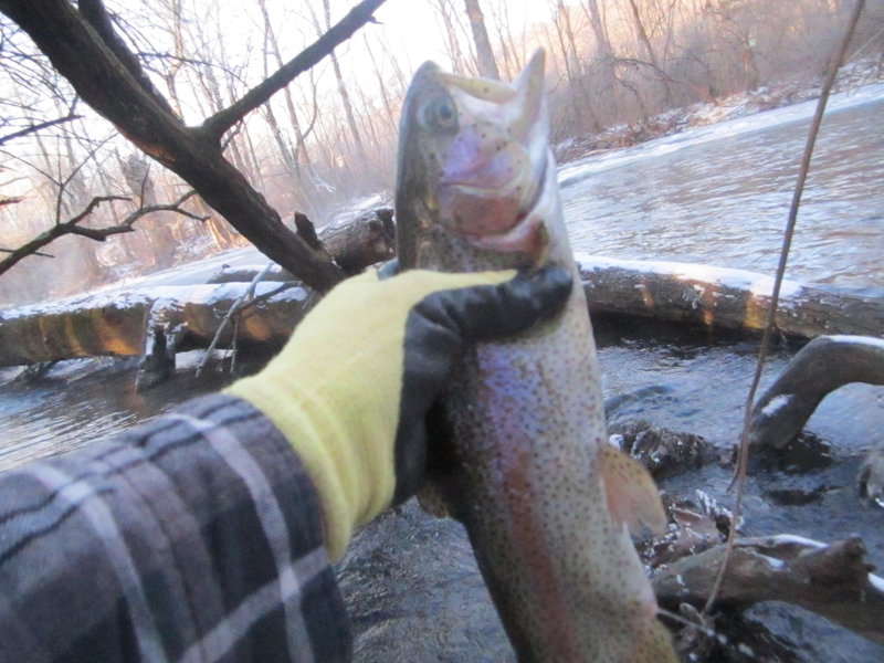 As cold as its been the only game in town other then the ice is the pequest,got there around 7:30 and it was game on.Picked up some real nice fish and also getting my PB brownie coming in at 22" that came home.Worked the section downstream from the hatchery away from the crowds and had the stream to myself.And yes it was cold as balls,frozen guides,line frozen to the spool and had my reel freeze up a couple times too.