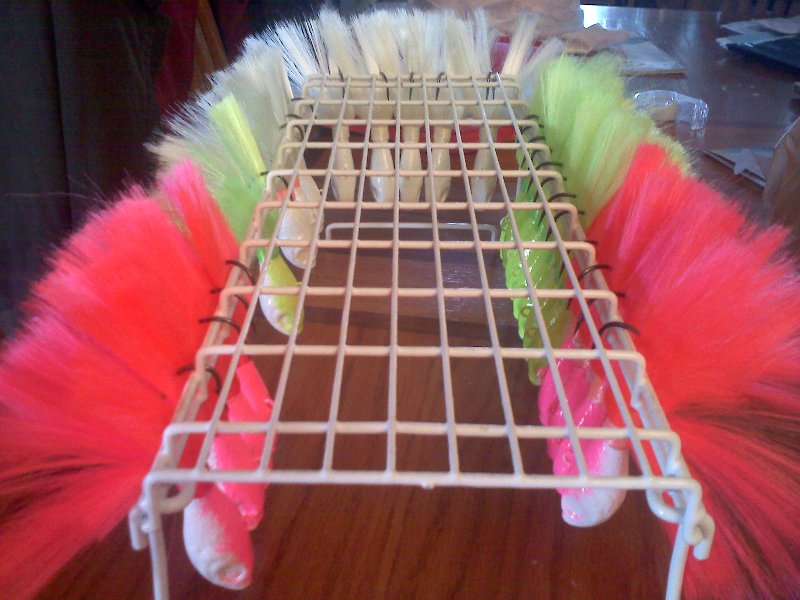 Of 8 oz jigs getting ready to ship out after final touches. I know it's only February but won't be long and before you know it Bucktail fever is here....