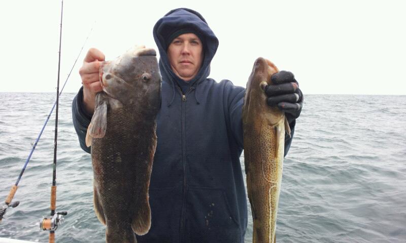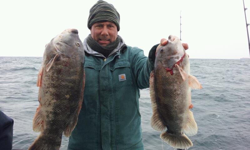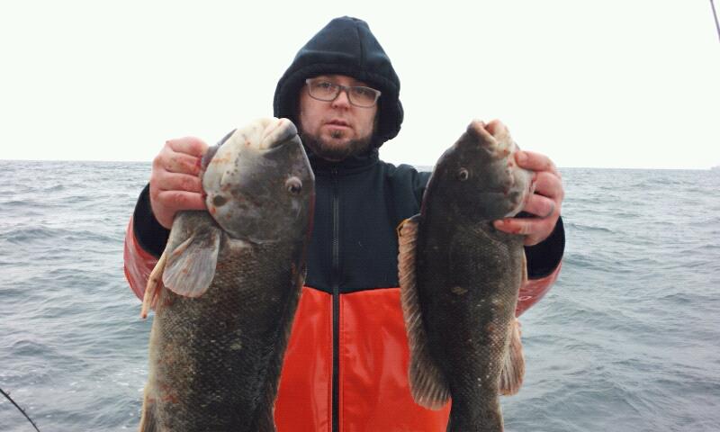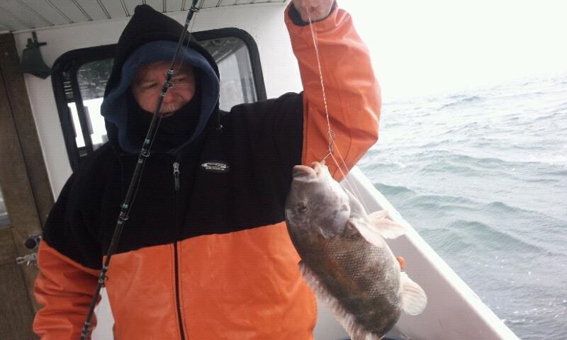 We left the fish biting at that spot to try another drop. The action was very good again. We again had the mix of cod, ling, blackfish, and pout here. In addition we were catching some of Joe Murray's favorites, Sea Ravens. We had some pretty heavy snow flurries in the afternoon but it did not slow us or the fish down. We ended up with close to a boat limit of tog and a bunch of ling and cod. I had 9 keepers yesterday. I would call that a great day of fishing, for any time, but an incredible day for the middle of February.