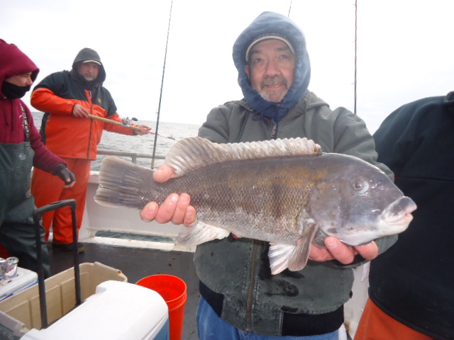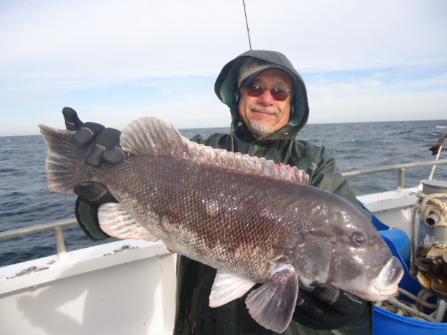 2-22-13 Seas were decent,,,2-3ft.early on,,,,light chop..Breeze dropped out and it got nicer as the day went on..All the spots we stoppped on today had life on em..Some ling,not as many as I would like,,,,fair amount of blackfish but most were shorts....Some keepers,,not that many though...High hook had two,,few other guys had one....We had some Codfish but I believe all went back...Overall not very productive for some and some had some fish to fry up..Pool fish went about 6lbs,,pics,,We are shaping up to fish tomorrow..Probably not Sunday though.....Monday on we are not fishing for a week due to the railbridge closing for repairs..Stay tuned for updates,,Some pics from today.oh,,,, and yes that is Shrimpman in the backround jumping in where Bobby Kojac just caught that nice Tog...Not that I am one to gossip.....actually I think mortgage man brought that up to me......