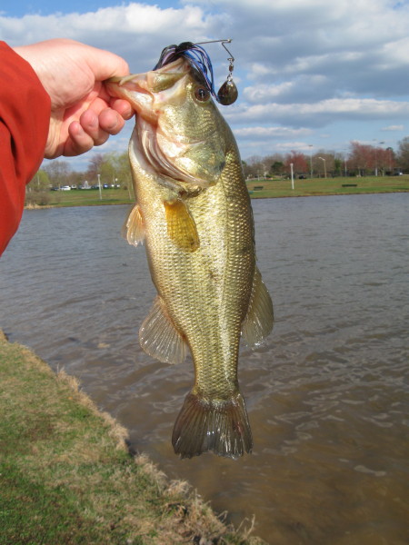 Decided to let the sun warm the waters a bit and hit the afternoon bite. I fished JFK Park in Sayreville from 3:30 to 6:30. Fishing was pretty slow; I managed four bass in the 1.5 to 2 pound range, plus a few hits. Two came on a weightless senko, and two came on a black and purple spinnerbait. All the hits came in windswept coves where shallow water transitioned to deep water; a classic early season bass pattern. The fish are in full pre-spawn mode now, which means that, if you can find them, you can catch them.