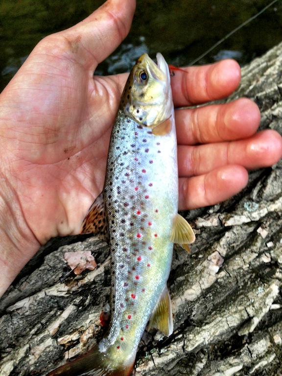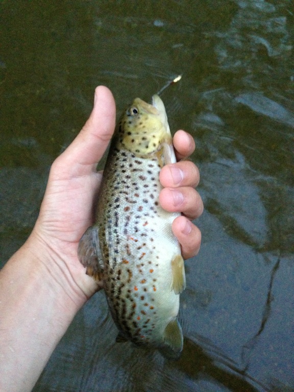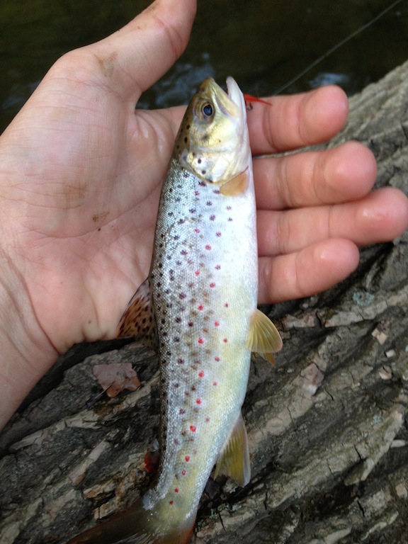 Was fishin a small creek today and got this guy. he looks like a wild brown maybe? I have never cought one before. Got him between stockin points a little off the beaten path. on a small gold pantherM.