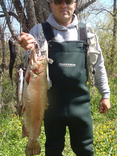 Had Anthony and his buddy Yuri out today...between the both of them 20 trout a mixture of brookies and rainbows. Anthony needed one more for a limit....we get to the last spot he takes a cast and nails this incredible 26 inch rainbow... 7 lbs. 6 oz. the largest trout of his life. Taken on a Black/Silver CD3 rapala on the Paulinskill River. Enjoy! Capt. Dave