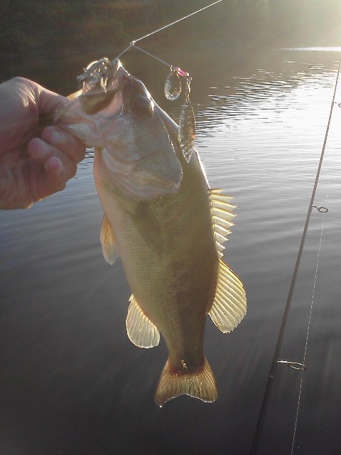 Hit the water for a few hours Friday after work. Just a couple hours yielded 5 fish. Nothing huge and I prob missed twice as many as I hooked. Threw only a booyah spinnerbait in a gold shiner pattern. Not quite white, but the hammered blades have been working well for me thus far. Here's a pic of the largest I caught. It actually hit about a foot or 2 from shore.