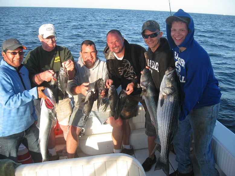 Had Ron out with Julio, Tucker, Ed, Dan and Steve. Made bait and made our way north, not a lot of news early so we did some seabassing landing some nice keepers. Shifted gears and set up on the chunk, wrestled some big gator blues till we landed our lone Striper to 20lbs. Went on hunt drifting numerous spots with nothing to show for it, another tough day on the grounds, fortunately the guys were fun to fish with.