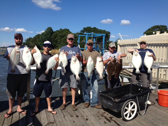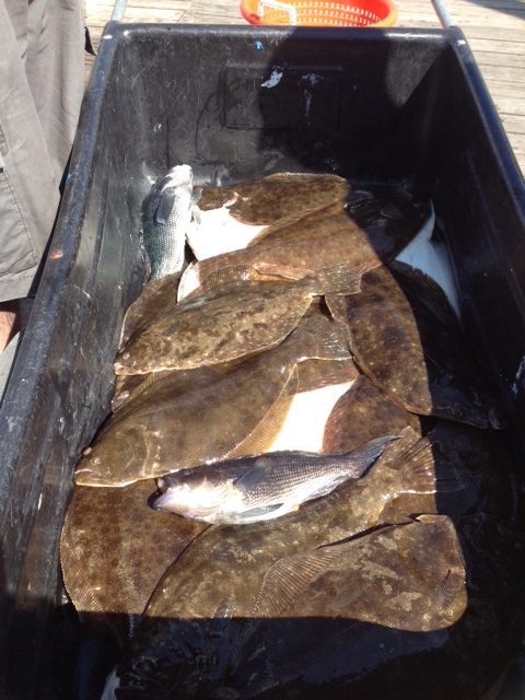 Ran back to where Kenny had them yesterday and found a small armada of boats drifting for fluke, we set up on some new #'s and had a little pick going with some fish here and there. Nothing to write home about but we'd pick a couple here and there. We then bounced around picking some here and there, going through some crazy lulls of simply no bites, and some shots of trash fish, but we pieced it together throughout the morning. By 12:30 the drift completely died so we took a ride offshore to fish a couple of wrecks in the 80' range and found zero life on them fluke-wise, so we ran back inshore and finished up where we started. We finally got a nice NW breeze going by around 2 and the pick again started up and we found some real nice fish to finish up the day. For the day we had 23 keeper fluke, 20 of which were over 20", topped by Jeremiah's 6#er. Jeremiah and Ryan both had their limits, and Bobby and Mark both had 3 each. We also had 2 nice knucklehead seabass in the box. Overall it was a grind today, but we wound up with a nice mess of fish and pieced together a real nice catch. Back at it tomorrow - still got 2 spots open! |