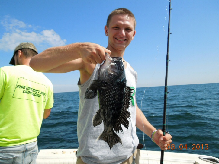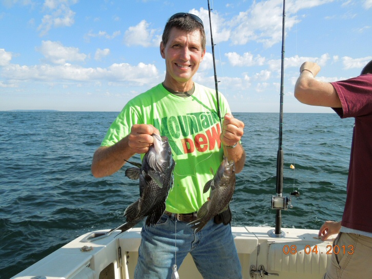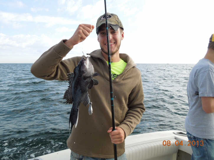 Today we had the Mike lewis charter on board for a day of Seabass fishing. Along with Mike were his 2 sons Ryan and Michael along with friends Chris, Ed & Frank. Paul ran up to the Seabass grounds and got into a nice steady pick of Seabass. The crew had to fish thru plenty of shorts but were able to put together a nice catch of quality Seabass. At days end we had 80 Seabass on ice along with 2 Fluke. You could not ask for a nicer day weatherwise and as usual it was fun to fish with Mike's crew.