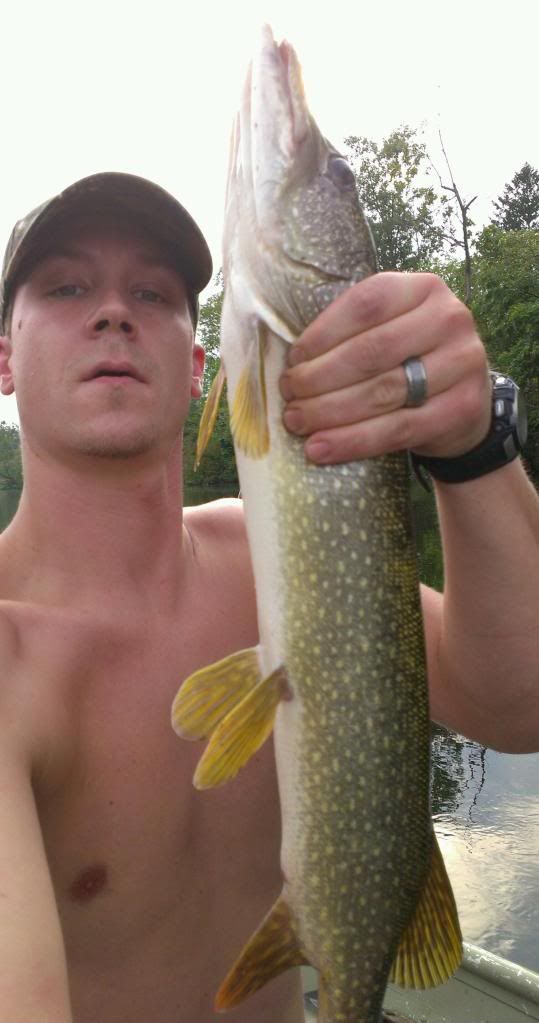 Finally made it out for a bit today. Hit the water around 5 and found some action. First fish of the day was a nice pike. Smacked a spinnerbait and fought really well. I was standing in the jboat and, right as I got him up alongside the boat, he jumped as high as my waist!!! If I was quick enough I could have reached out and grabbed him out of mid air, lol. Hooked up with another, slightly bigger one soon after. Stayed hooked the whole time but shook it loose when I went to grab him. Oh well, self release. Moved on to another spot and picked off a couple small smallies on an inline. Not big, but fun to catch. Called it a day soon after...........