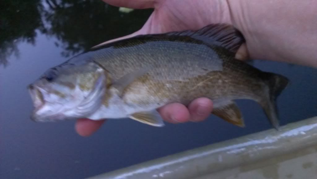 Thanx guys. Went back out this morning around 7. Fished till about 8:30, picked up a decent lmb and a med smallie. Then got caught about a mile and a half downstream in an ungodly DOWNPOUR!!! Made it about halfway back and it let up so we kept fishing. Then the thunder started crashing all around so we packed it in. Rained so hard we had to bail out the whole way back to the launch, uggghhhhh. Good thing I had a coffee cup in the boat, lol.........
