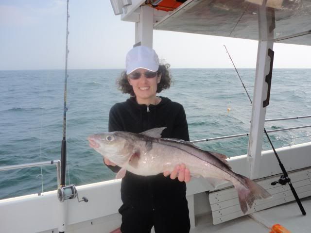 My wife Dolores and I spent 2 great days ground fishing on Jefferies Ledge out off NH and had very good fishing . Friday was a little messy but great fishing for Cod and haddock with a few Pollack . Lots of fish with some big bull haddock to 12lbs and cod to 18lbs for the 10 people on the open boat. Second day was raining but flat water, hit the same spots but only found tons of haddock and cod in the 18-20" range ( what a difference 12 hrs makes) Captain went searching and power drifting in 200-380' for cod and Pollack and found some real nice pockets of Pollack and cod , Captain but us over a school and yelled drop them and boom every one hooks up some with doubles of 15-18 lb fish.